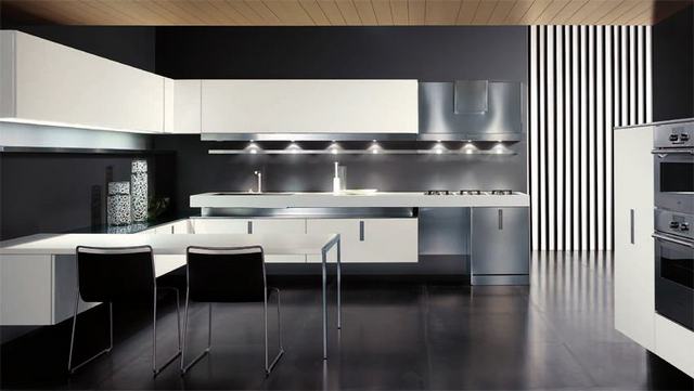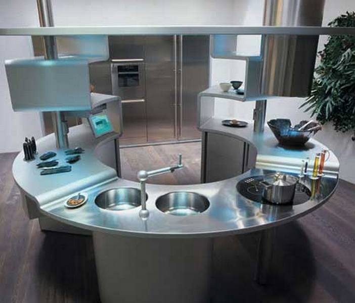 То же касается и стиля ХАЙ-ТЕК. Только тут металл должен навеивать футуристические мотивы, а значит блестеть, переливаться и иметь идеальную форму и глянцевую текстуру. Для воплощения этих целей подойдёт латунь, хром, нержавеющая сталь и порой даже алюминий. Причудливые плафоны светильников, отделка стен и обтекаемые формы мебели — всё это превратит ваш дом в эталонный образчик стиля хай-тек.