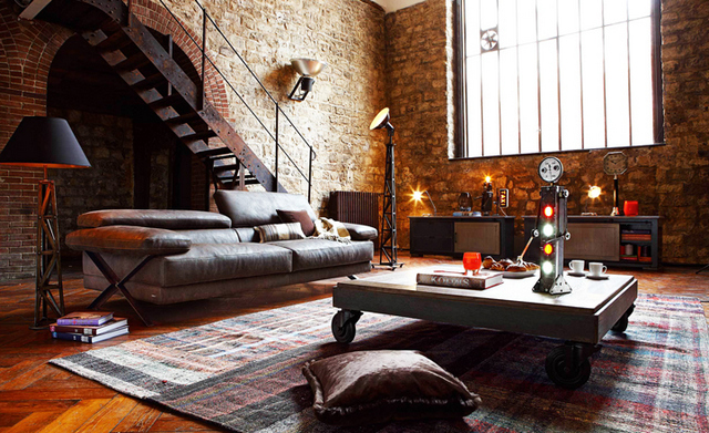 Начнём со всеми любимого стиля ЛОФТ. Самой основной отличительной чертой которого является формула «дерево + металл». В декоре может быть использована латунь, нержавейка, а так же медь и бронза. Использовать металл в интерьере лофт можно где и как угодно. Кровать, стены, стеллажи, столы, кресла и декор, выполненные из железа, для этого стиля не перебор.
