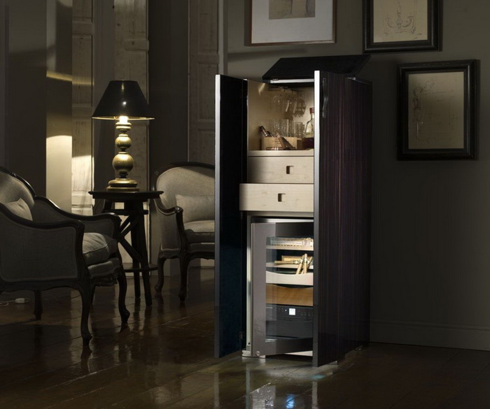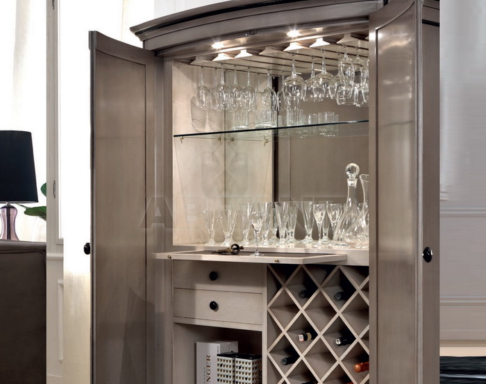 В Вашем интерьере есть свободный шкаф или место под него? Можно организовать мини-бар прямо в нем. Мини-бар в шкафу, дверцы которого закрываются на ключ – это хороший вариант для тех, в чьем доме растет ребенок. Так, алкогольные напитки будут надежно спрятаны от малыша.