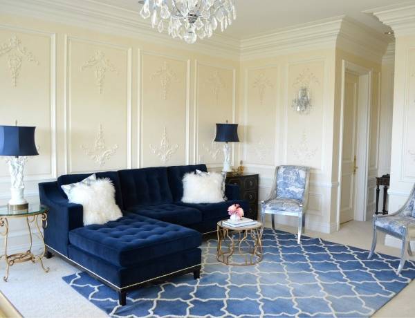 Шикарный бархатный диван в интерьере гостиной — 10 фото