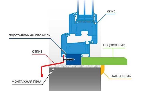 - 5.2 Если пластиковое окно установлено без подставочного профиля
