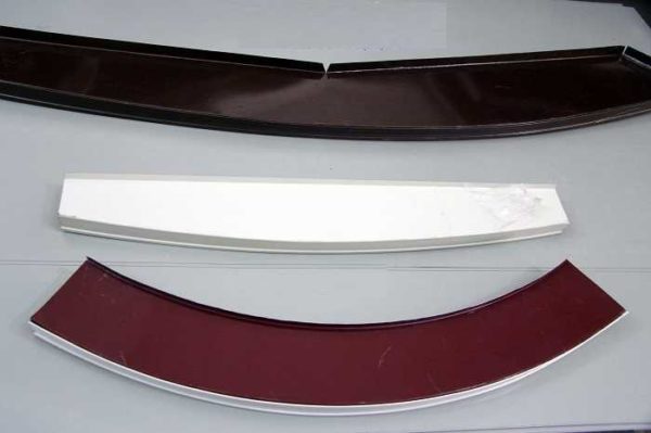 Если есть необходимость сэкономить, сделать отливы для фигурных эркерных окон, можно из обычных оцинкованных отливов с полимерным покрытием. В этом случае их нарезают на куски, при помощи которых можно создать нужный изгиб.
