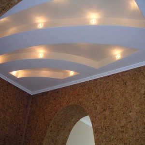 Гипсокартонный потолок со встроенными светильниками