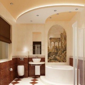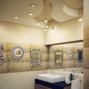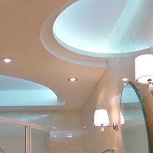 Ванная комната – подходящее место для экспериментов в плане поиска оригинального дизайна. Объем ее обычно не большой, поэтому для создания особой атмосферы желательно использовать любую поверхность, в том числе и потолок. Потолок из гипсокартона в ванной – одно из средств воплощения в жизнь дизайнерских фантазий.