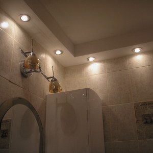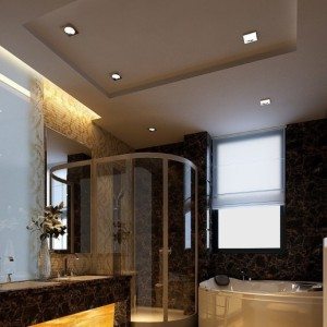 Выбрав потолок в ванной из гипсокартона, определившись с его дизайном, количеством и местоположением светильников, приступают его монтажу.