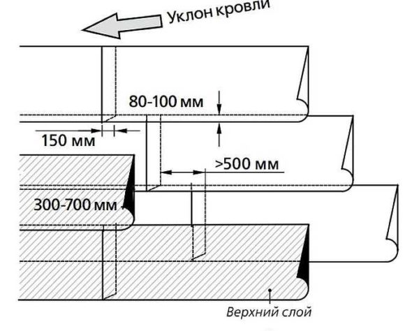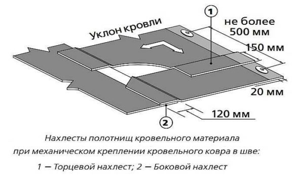 Нахлесты при устройстве мягкой рулонной кровли с механическим креплением