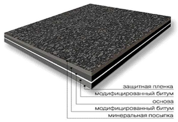 • На основе кровельного картона, пропитанного битумом, посыпанного минеральной присыпкой. Достоинство этого материала — его низкая цена, недостаток — малый срок эксплуатации, плохая переносимость перепадов температур. Он крошится при -15°C и пои +50°C, что очень сильно сужает область применения подобны материалов. Сегодня рубероидом кроют в основном только хозпостройки, и то далеко не всегда.