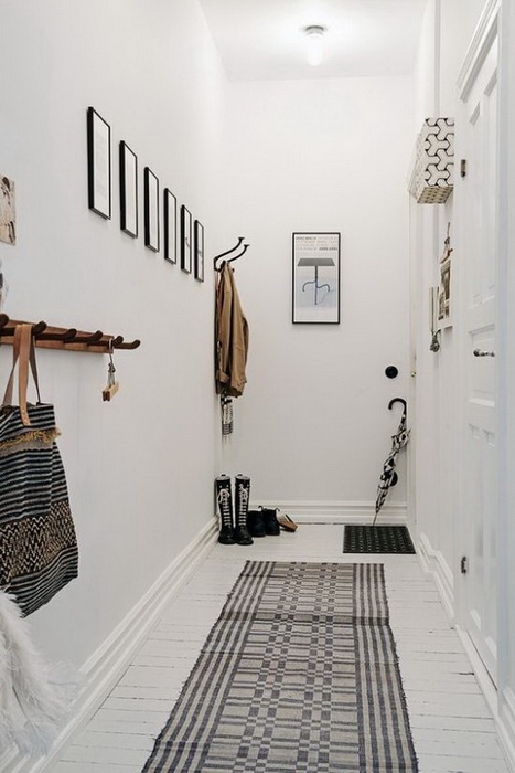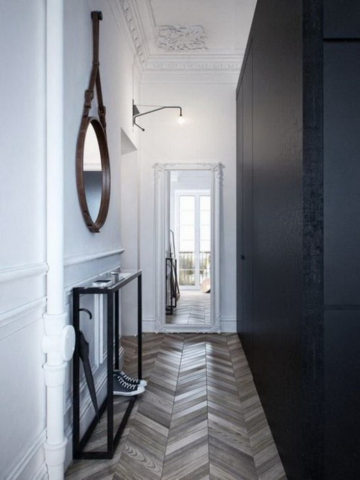 Наливные полы. Напольное покрытие из полимера на ощупь напоминает очень плотную резину. Оно легко поддается точечному ремонту, однако само создание такого пола – весьма трудоемкий и долгий процесс. Но если этот фактор вас не смущает, то в итоге вы получите идеально ровную поверхность, на которую приятно смотреть и по которой приятно ходить. Если Ваша прихожая оформлена в скандинавском стиле или стиле минимализм, то данный вариант можно назвать одним из наиболее подходящих для вас.