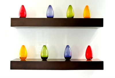 Данная полочка, казалось бы, обычная — горизонтальная и прямоугольная, но она глянцевая и широкая, к тому же яркие предметы, на шоколадном фоне смотрятся просто превосходно. Такая полочка является самым настоящим украшением стены.