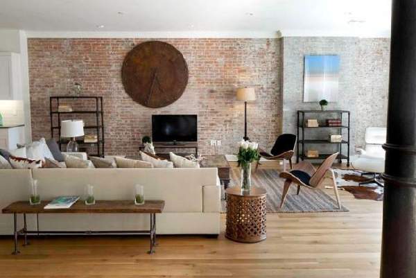 Ваша гостиная комната в стиле лофт? Прекрасно, ведь существует много красивых и необычных настенных часов в стиле лофт, дополняющих интерьер. Гостиную комнату в данном стиле можно украсить не одними часами, а сразу несколькими разными моделями. Такой вариант смотрится довольно интересно, а пример вы можете увидеть на фото ниже.
