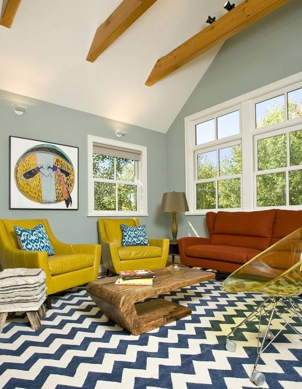 Прозрачная акриловая мебель высоко ценится за свой стиль, а также способность придать любой комнате легкость и воздушность. Однако для многих она остается довольно сомнительным выбором как раз ввиду своей невидимости: а вдруг я сам буду о нее спотыкаться? Специально для тех, кто не хочет ударятся о собственную мебель, но также хочет удивлять стилем своего жилища, есть цветная акриловая мебель, примеры которой вы видите на следующих фото.
