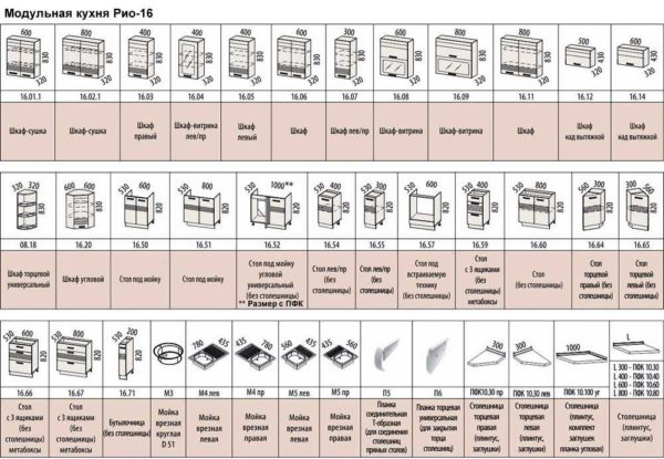 • 3 Размеры шкафов в модульных кухнях