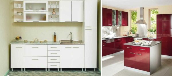 Модульные кухни отличаются большим количеством разнообразных шкафов разных размеров и типов, но оформленных в одном стиле и цвете. Из них, как из конструктора, можно собрать отличающиеся по внешнему виду и размерам кухни. Это удобно, так как при минимальных затратах позволяет подобрать такую мебель, которая удовлетворяет вашим запросам, вписывается по размерам в вашу кухню какого бы размера они не была.
