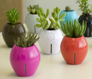 Такие забавные горшки-смайлы трудно оставить без внимания, несмотря на свои несерьезные рожицы, такие кашпо, благодаря их приглушенному оттенку, вполне можно установить в любом помещении дома.
