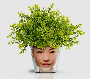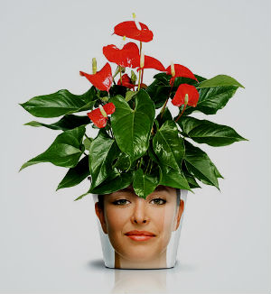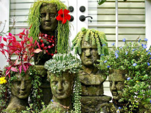 Очень креативно смотрятся цветочные вазоны, имитирующие бюсты людей, а посаженные в них растения выступают в роли волос и причесок.