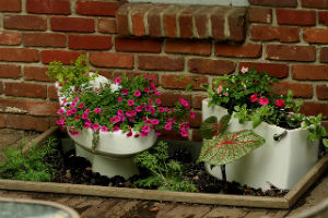 Как Вам такие вазоны из старого унитаза и сливного бачка, думаю, данные предметы прекрасно приживутся на балконе или лоджии.