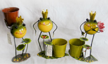 Прекрасная идея создания таких забавных горшков, имитирующих лягушек с коронами на головах и  очень длинными ножками. Такие изделия, замечательно впишутся в декор кухни и детской комнаты.