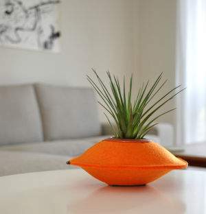 Дизайнеры не перестают радовать нас своими творениями, вот и данный горшок изготовлен из не вполне традиционного материала — войлока. Внутри данного изделия, установлен самый простой горшок, который внешне дополнен войлоком.