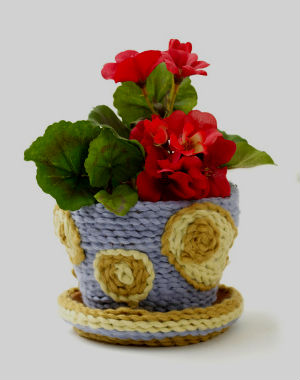 Такой позитивный, «улыбающийся» горшок, просто великолепно впишется в Африканский или Гавайский дизайн интерьера.  4. Вязаный горшок.