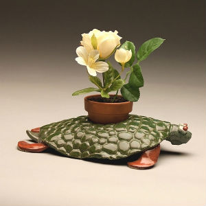 Великолепно смотрится горшок, идущий в комплекте с такой чудесной подставкой-черепахой. Такому стильному изделию, самое место в гостиной комнате или спальне.