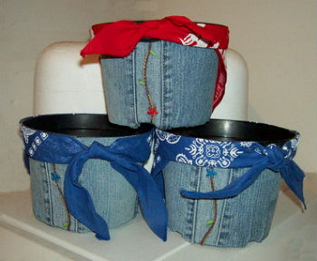 Горшок, декорированный джинсовой тканью и дополненный банданой, просто великолепно впишется в интерьер, выполненный в стиле канти и техас.