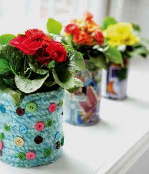 Конечно, обвязанный шерстяными нитями горшок будет не совсем практичен, но за то он смотрится по-домашнему уютно!
