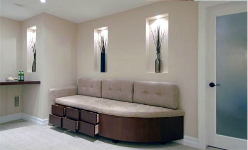 По сути, ниша — это углубление в стене, традиционно вертикальной прямоугольной формы с купольным сводом. В наши дни довольно часто встречаются более изощренные формы ниш в виде месяца, цветов, горизонтального расположения или вертикального, строгих форм или более нестандартных. Такое сооружение служит своего рода полочкой для декоративных предметов: ваз, статуэток, также в нише часто располагают цветную подсветку, вешают настенный светильник, картины или фоторамки. Таким образом, получается, что ниша выполняет больше декоративную роль, привнося в дизайн интерьера новые стильные нотки, при этом в зависимости от предпочтений хозяев данное сооружение с установленными полочками может быть функционально полезно, ведь здесь можно расставить диски, книги, поставить стационарный телефон, уложить пульты от техники и т.д. Благодаря такой нише в дизайн интерьера можно внести долю чего-то нового, что позволит уйти от однотипной, скучной планировки. Кроме того данный элемент интерьера при желании хозяев поможет скрыть нелицеприятные батареи, что является неоспоримым плюсом.