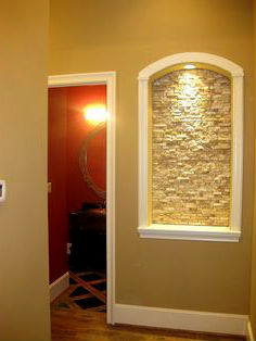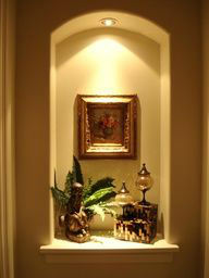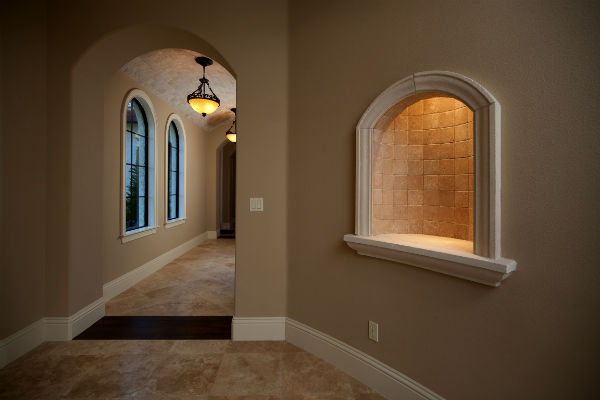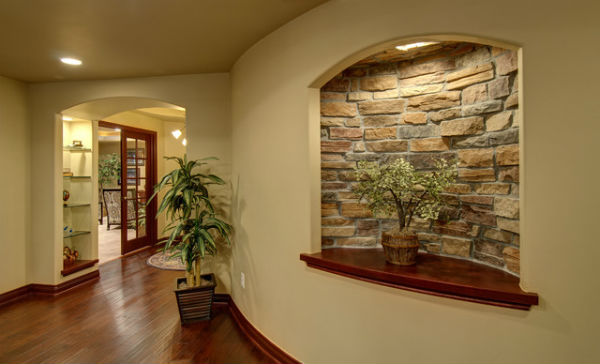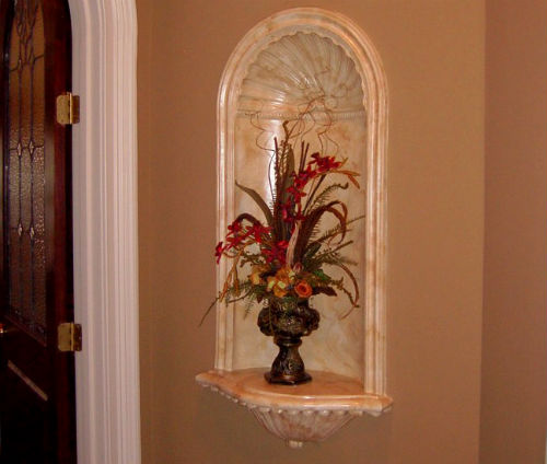Такие ниши подходят помещениям с высоким уровнем потолков, также она великолепно решает проблему с пустующей стеной. Часто данный элемент интерьера декорируется лепниной, камнем или мозаикой. Такие ниши могут быть не только с полукруглым сводом, но и строгих прямоугольных форм. Соответственно полукруглые очертания больше подойдут классическому интерьеру, а строгие линии идеально впишутся в современный стиль интерьера.