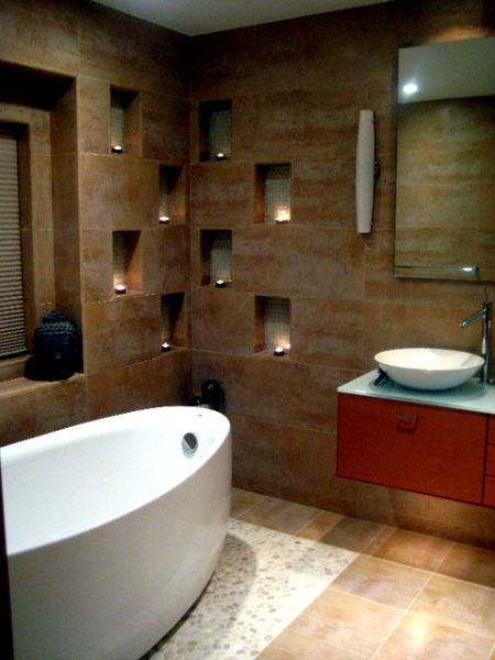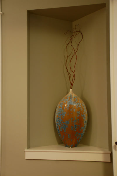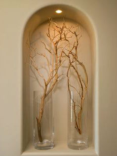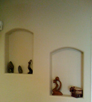 ► Нишу с полукруглым сводом можно расположить в центре стены, если она крупных размеров, то лучше пусть будет одна. Но также в моде три таких ниш небольших размеров, расположенные в один горизонтальный ряд.
