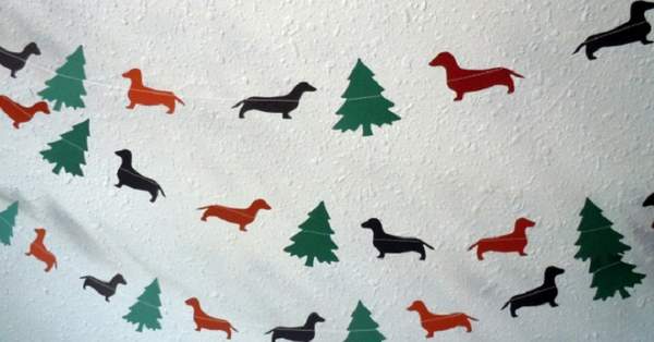 И в заключение хотелось бы рассмотреть несколько несложных способов, как сделать новогодние гирлянды из бумаги своими руками, учитывая, что грядет год Собаки. Самый простой способ — вырезать из бумаги разноцветных щенков, косточки, следы и с помощью иголки нанизать картинки на нить.