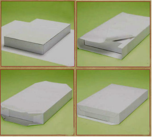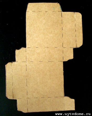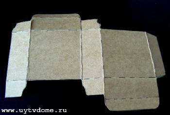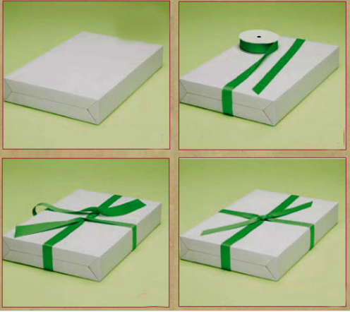 На листе картона создаем шаблон будущей коробочки (см. фото), вырезаем, сгибаем по пунктирным линиям, формируем коробочку, склеиваем. Берем упаковочную бумагу и согласно схеме, представленной ниже — упаковываем «подарок», не забывая повязать ленточку и закрепить леску.