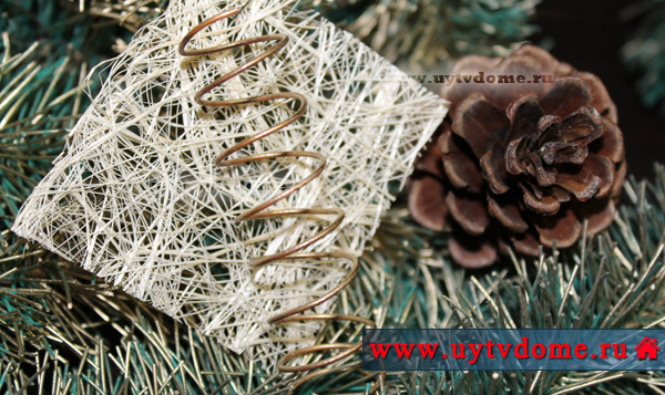 Тоже очень интересное елочное украшение, делается довольно просто и быстро. Зайдите сюда, и почитайте подробности.