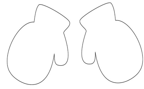 Перерисовываем на фетровую ткань шаблоны варежек, вырезаем. На каждую варежку понадобится по две заготовки, сшиваем первые две детали вместе, путем обметочного обшивания. Аналогично поступаем со второй варежкой, по желанию манжеты можно сделать из белой ткани.