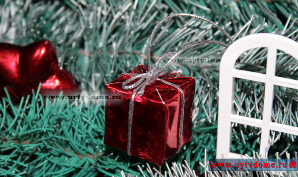 - 7. Елочная игрушка — в виде упакованного подарка.