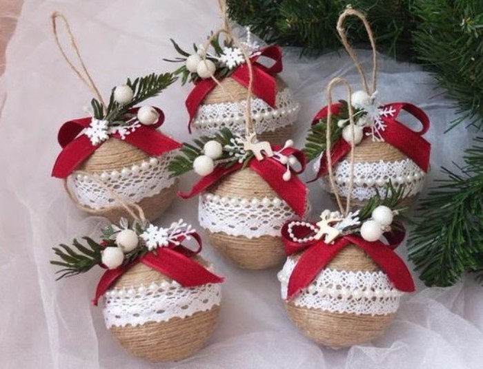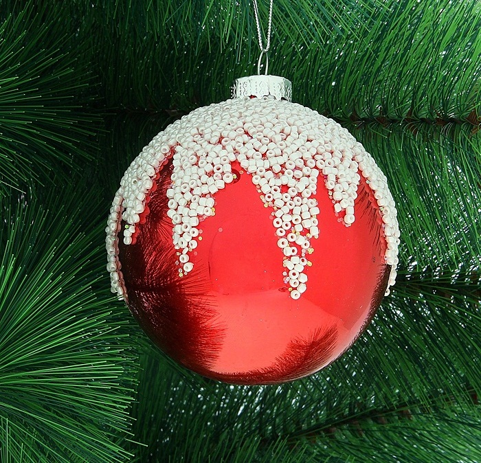 Декор новогодних игрушек, с которым мы ознакомим Вас, позволит вдохнуть в новую жизнь в старые игрушки, а также станет хорошим подспорьем продающимся в магазинах дорогостоящим дизайнерским украшениям. С помощью небольших отрезов ткани, которые, наверняка найдутся у каждой хозяйки, можно осуществить декор новогодних шаров. Для этого необходимо обвернуть тканью шар и связать его сверху красивой ленточкой, дополненной блестками, яркими бусинами и прочими деталями. Также украсить старые игрушки или замаскировать дефекты на них поможет бисер. На поверхность необходимо нанести клей и рассыпать на него бусины, дать композиции высохнуть, а затем легонько стряхнуть все, что не приклеилось. Таким способом можно обработать всю поверхность или определенную ее часть.