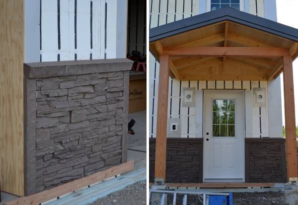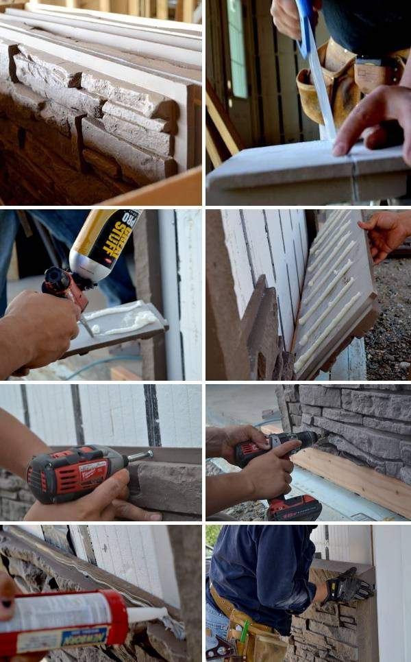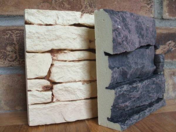 Вариант № 1 — использовать панели из пенополиуретана. Они являются очень легкими и удобно соединяются друг с другом. Современные технологии придают им настолько «каменный» вид, что отличить их от натурального материала можно лишь после прикосновения. Этот тип отделки также может служить вам долгие годы, поскольку отличается хорошей стойкостью ко всем погодным условиям.