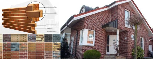 Это многослойный материал. На слой ОСП (есть не всегда) наклеен слой утеплителя (пенополистирола), а на него — тонкая клинкерная плитка.Есть вариант только из пенополистирола и клинкера. Выпускается в виде прямоугольных блоков с зубчатыми краями.