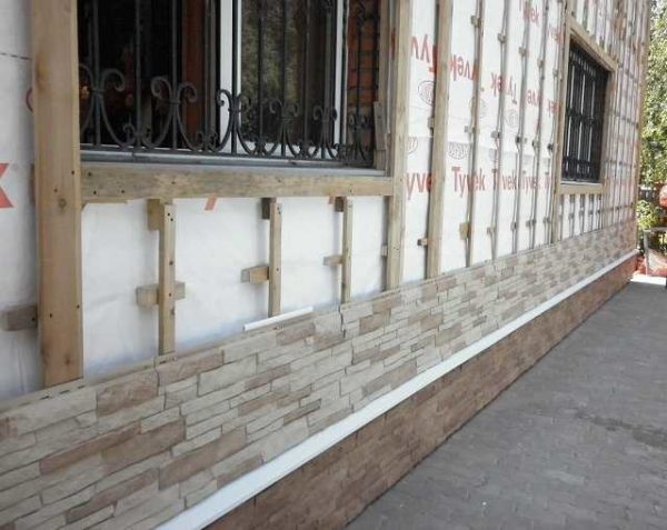 На бруски можно закрепить фасадный и цокольный сайдинг, фиброцементные плиты, ДПК, клинкерные панели. Только перед монтажом древесина обязательно обрабатывается антибактериальными и антипиренными составами. Бруски можно заменить оцинкованными профилями для гипсокартона. Они также неплохо справляются со своей задачей. Но надо помнить, что для большинства фасадных панелей существует собственная система профилей с особыми элементами крепления. Штатное крепление предусматривает, обычно, потайной монтаж — без повреждения лицевой поверхности. Заменяя профили на брус, приходится в отделке сверлить отверстия под установку крепежа а это не очень хорошо, так как нарушает герметичность.