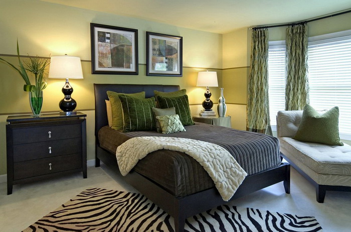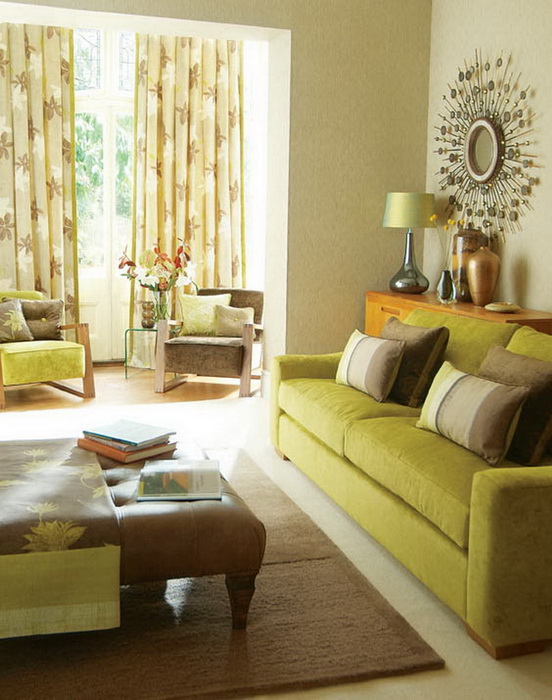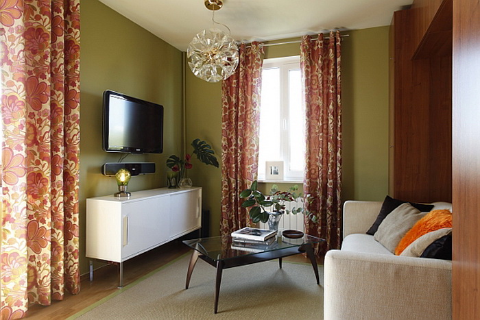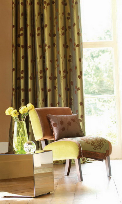 Что касается текстиля: штор, покрывал на диван, кровать, их часто выбирают с вкраплениями оливкового цвета. Это делается для того, чтобы соединить отдельные предметы в единую композицию.