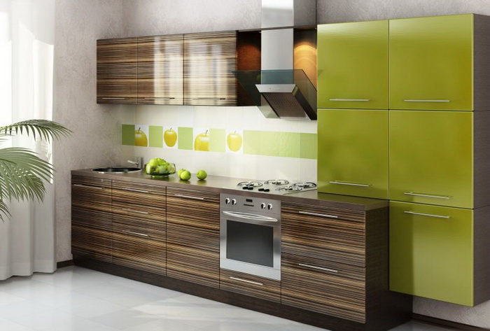 Оливковый кухонный гарнитур — классика, которая не стареет.