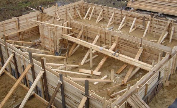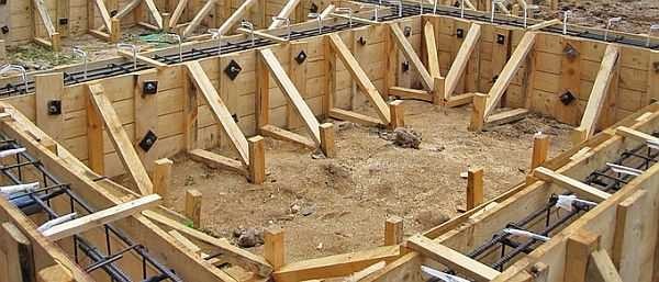 Самая объемная — опалубка для ленточного фундамента. Она повторяет контуры дома и всех несущих стен с двух сторон ленты. При строительстве более-менее большого здания с большим количеством перегородок, расход на материалы для опалубки фундамента будет очень значительный. Особенно при глубоком заложении фунлдамента.