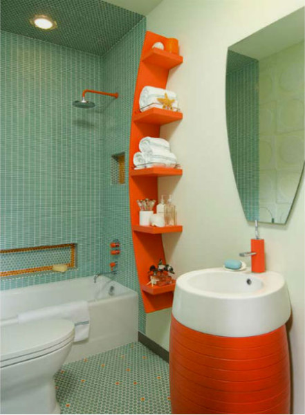 Каждый современный человек начинает свой день с водных процедур. И так хочется, дабы с самого начала нас приветствовало солнце, потому что солнечные лучи заполняют нашу душу неугасимой энергией и оптимизмом. Помимо этого, дизайнеры отмечают, что оранжевый цвет создает неплохой фон для нанесения дневного макияжа.