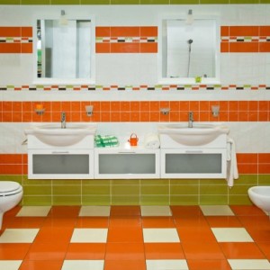 Сочетание оранжевого с зеленым тоном – хорошее решение для жизнерадостной ванны