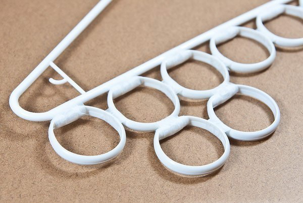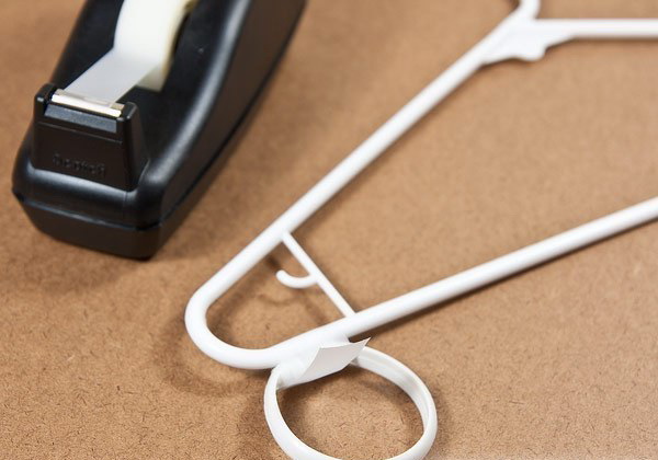 Аккуратно примотайте колечки к вешалке (ряда 2-3 небольше – скотч «не выдержит»).