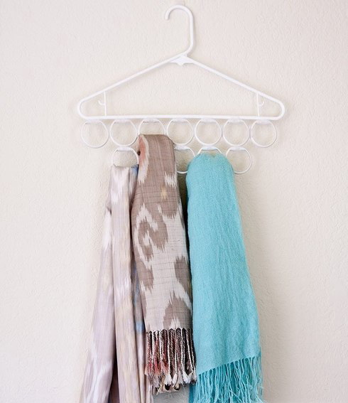 Нам потребуются: вешалка, колечки любые, подходящего размера (от шторы в ванной, например), скотч (любая клейкая лента).