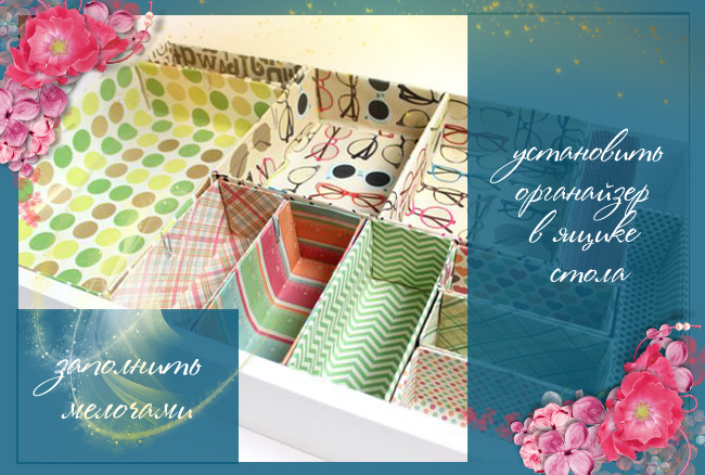 Ну и в завершении устанавливаем органайзер в ящичек рабочего стола, заполняем отсеки полезными мелочами, и восторгаемся воцарившемуся порядку! Удачных самоделок и до новых встреч на страничках нашего сайта!