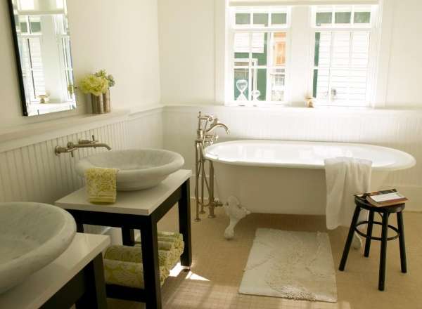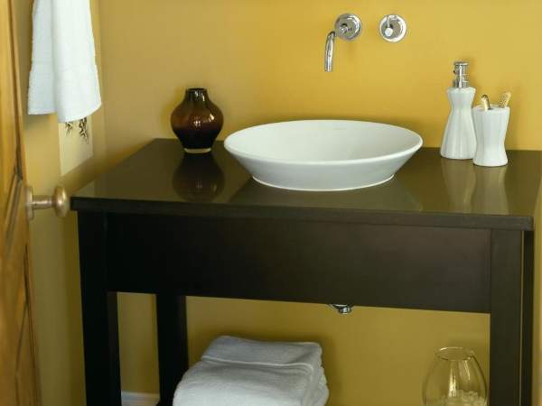 - Стол или стол-тумба сделают трубы заметными, поэтому вам придется побеспокоится об их дизайне. Традиционный белый пластик выглядит не очень эстетично и его вид только портится с годами. Зато металлические трубы могут придать вашей ванной дополнительный блеск и шарм.