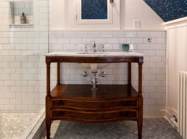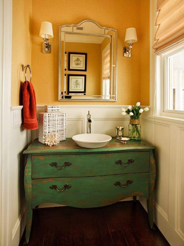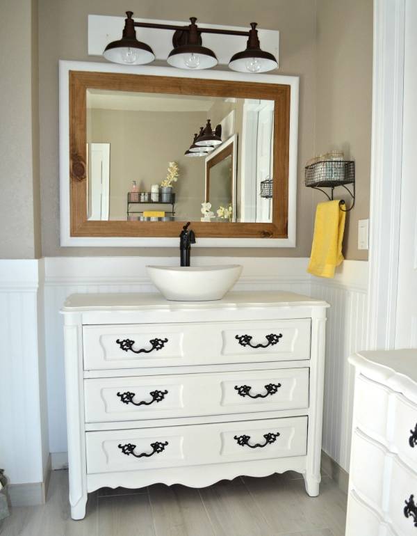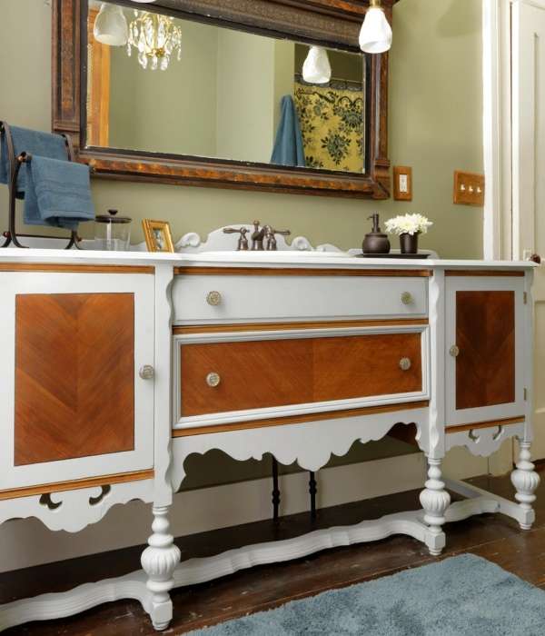 Переделка старого комода под тумбу для умывальника придаст вашей ванной комнате винтажный дух, а также теплоту и уют жилого помещения. Кто бы мог подумать, что обычная мебель будет так красиво сочетаться с блеском плитки, стекла и других гладких поверхностей в ванной! Вот как из неё создается стильная тумба под раковину своими руками: