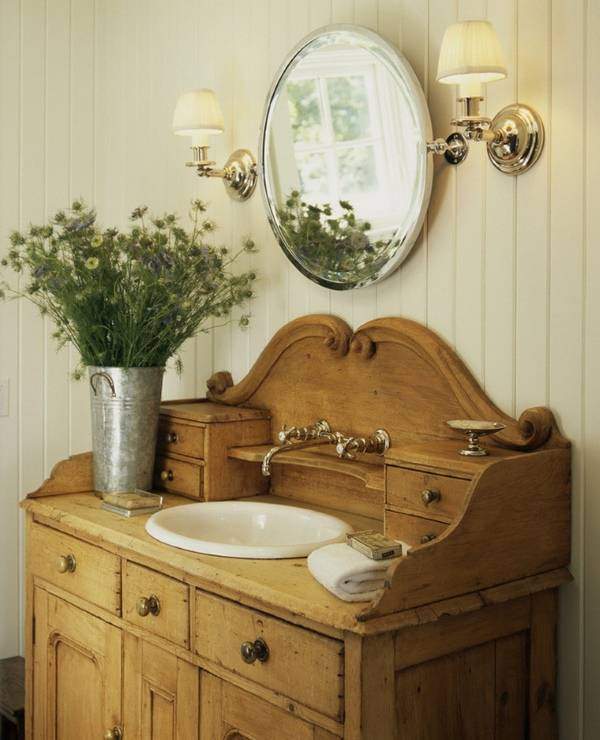 - Вы можете изготовить тумбу их дерева с нуля, хотя переделать и отреставрировать старый комод, стол или кухонный шкафчик будет намного проще;