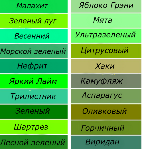 Насыщенная зеленая палитра, в отличие от своего бледного аналога, способна активизировать жизненную энергию, она бодрит и держит человека в тонусе.